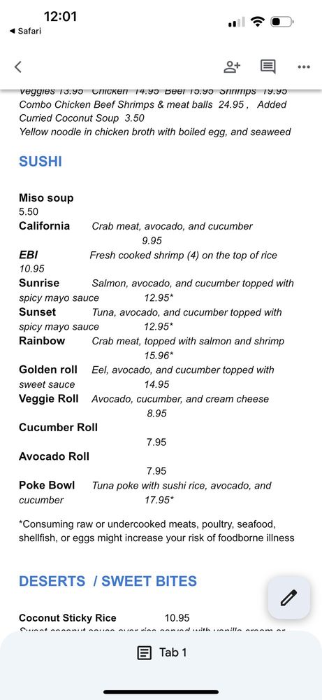 The national dish of Lao- minced protein of choice tossed with fish sauce, lime, chili flakes, and native herbs served with a side of sticky rice*consuming raw or undercooked meats, poultry, seafood, shellfish, or eggs might increase your risk of foodborne illness