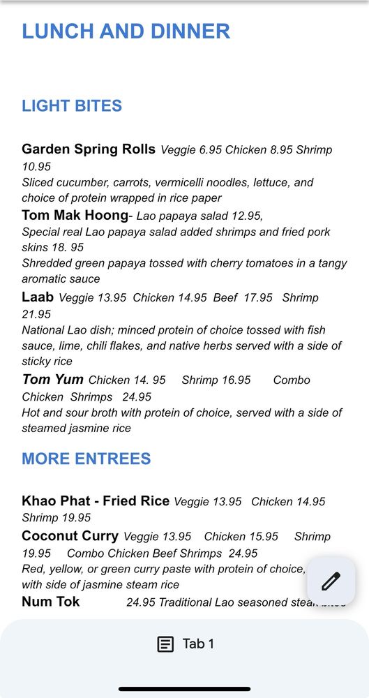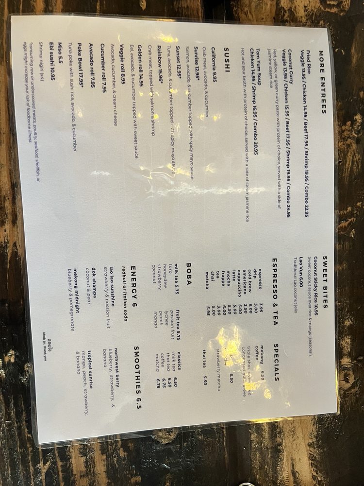 The menu features a delightful array of dishes, such as the Papaya Salad, which tantalizes the taste buds with its fresh, tangy flavors, and the Khao Poon, a rich, coconut curry noodle dish that warms the soul. For a taste of authenticity, don’t miss the Laab, Lao’s national dish, bursting with aromatic herbs.
