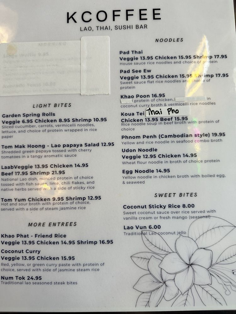 Welcome to KCOFFEE: THAI & LAO FOOD, where vibrant flavors meet warm hospitality. Nestled in Vancouver, WA, this cozy eatery combines the best of Thai and Lao cuisine in a welcoming atmosphere perfect for food lovers and casual diners alike.